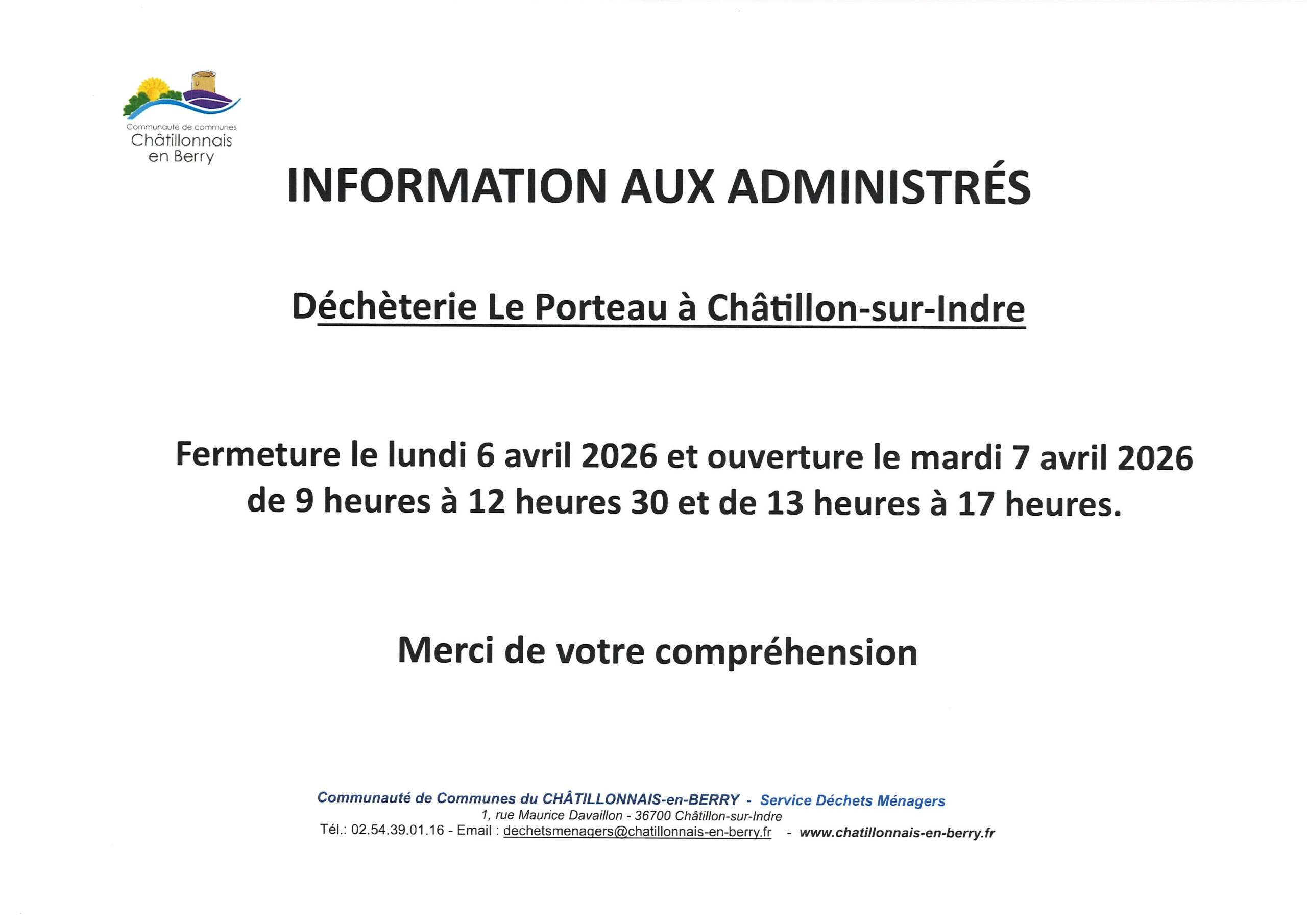 Décalage ouverture de la déchèterie