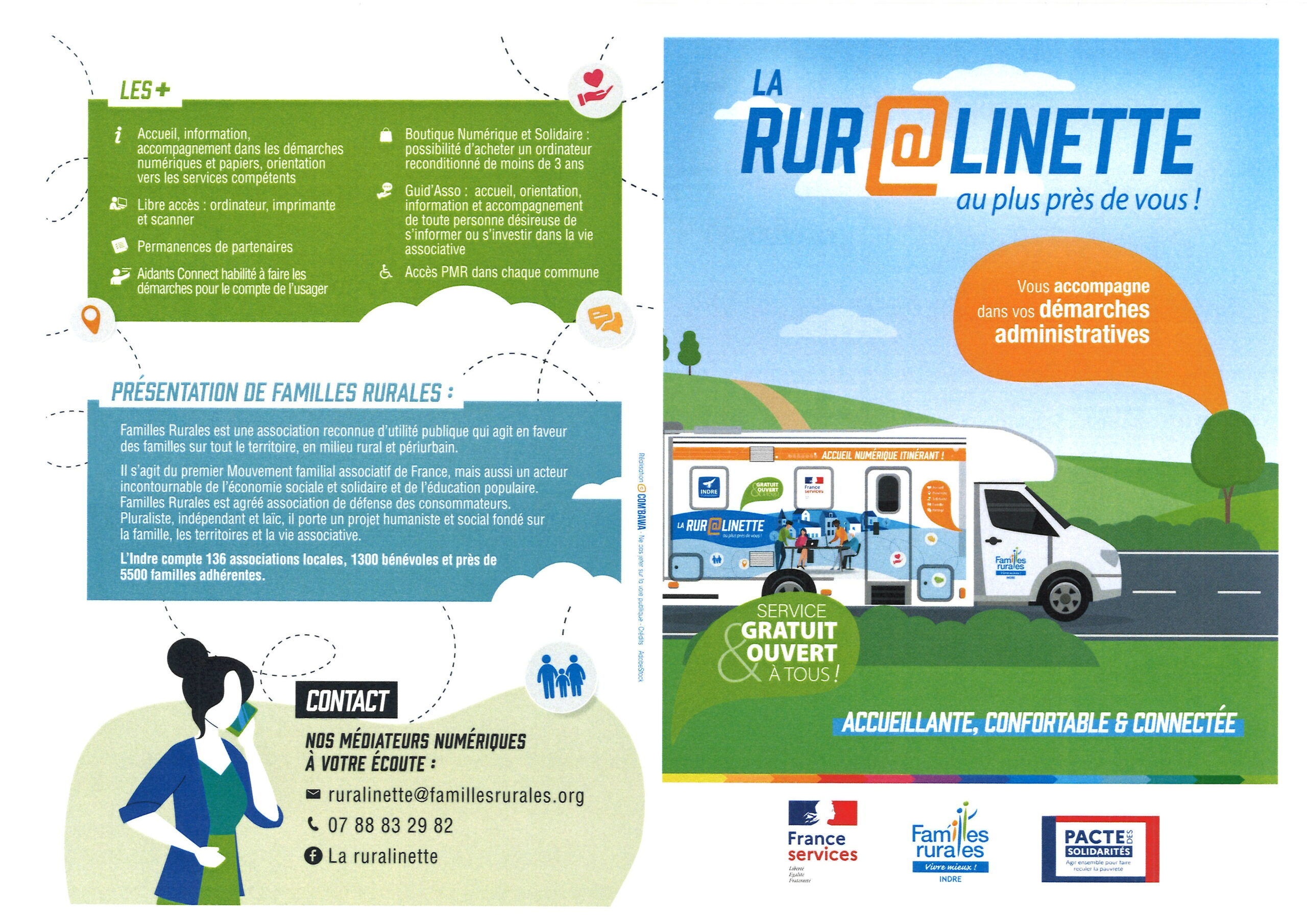 Ce nouveau dispositif est un point de médiation numérique sous la forme… d’un camping-car ! Ce dernier se déplace sur plusieurs communes du département de l’Indre. Des accès adaptés aux personnes à mobilité réduite sont prévus.